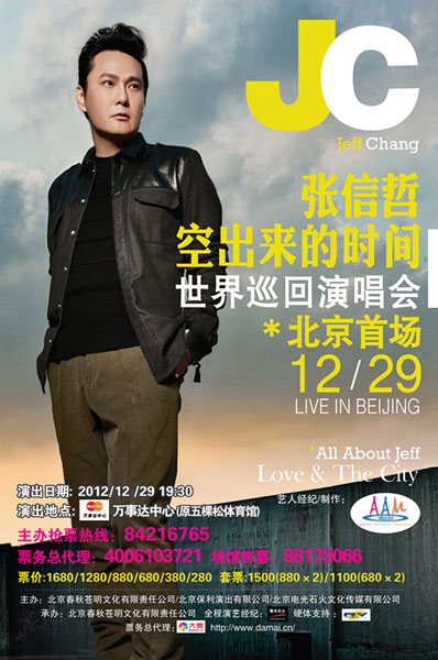 “情歌王子”張信哲將于12月29日在北京萬事達(dá)中心舉辦“空出來的時間”北京演唱會,這場演出將是張信哲2013年世界巡回演唱會的首場演出。自出道以來就演唱了無數(shù)經(jīng)典情歌的張信哲,卻始終有一顆“搖滾”的心,不僅會在工作之余會經(jīng)常聽搖滾曲風(fēng)的歌曲,在近幾年的個人作品中,也越來越多嘗試搖滾曲風(fēng)。而在這次首次擔(dān)任導(dǎo)演的北京演唱會中,阿哲還將特別設(shè)立“華麗搖滾”的橋段,可見“情歌王子”此次是下定決心大玩搖滾,要帶領(lǐng)觀眾在新年前夜HIGH翻萬事達(dá)中心!