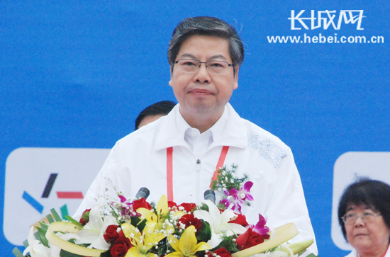 衡水市委書記劉可為在2012衡水湖國(guó)際馬拉松賽上致辭。王永宏 攝