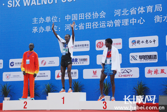 長(zhǎng)城網(wǎng)衡水9月22日電(王永宏 扈煒)今日8時(shí)02分,2012衡水湖國(guó)際馬拉松賽鳴槍開跑,在衡水湖國(guó)際馬拉松賽廣場(chǎng),來自世界26個(gè)國(guó)家和地區(qū)的參賽選手及馬拉松愛好者沖出起點(diǎn)。經(jīng)過激烈角逐,來自埃塞俄比亞選手雷格塞·海路·梅克楠以2小時(shí)8分7秒、黛米西·埃塔勒瑪胡·基達(dá)妮以2小時(shí)28分3秒的成績(jī)包攬全程馬拉松賽男女組冠軍。