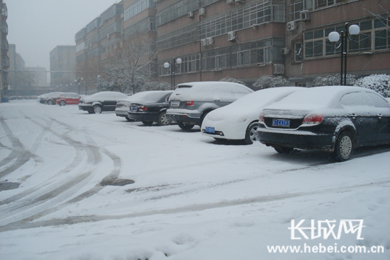 車輛蓋上了潔白的“棉被”。扈煒 攝